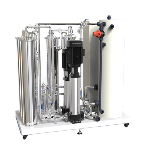 结构及组成:由原水增压泵,罐式过滤器,滤芯式过滤器,软化器,碳吸附罐,反渗透装置,后输送管路组成,选配热消毒装置。
